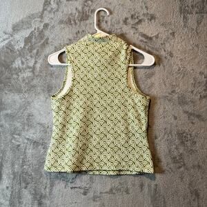 Anthropologie Maeve Structure Mock Neck Mod Top Green Geometric Print Size Small