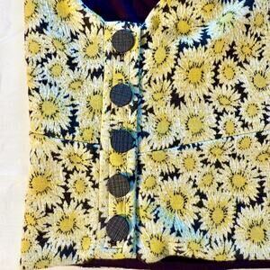 Very cute and perfect for summer! This is a Maeve crop top or can be used as a vest, with a sunflower print. Sturdy construction and adorable side buttons.
