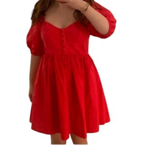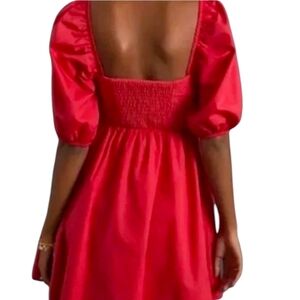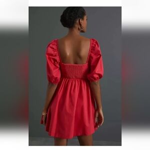 Anthropologie Maeve Sweetheart Dress Red Puffed Slv Smocked Button Close SM FLAW