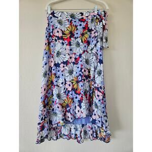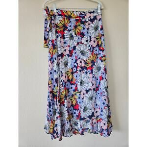 Anthropologie Maeve Sybil Wrap Skirt, Size XS. Excellent pre-loved condition. No stains, holes, flaws or defects. Color: Navy/Multi floral