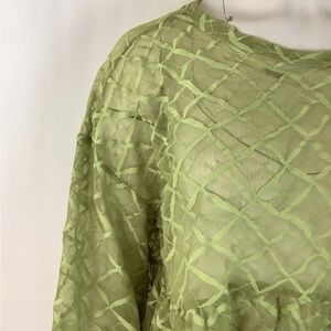 Anthropologie Maeve Sz L Sheer Babydoll Top Green Polyester Viscose Boho Look