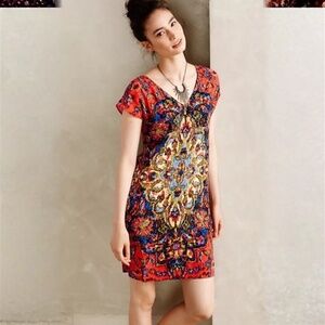 Anthropologie Maeve Sz S Pullover Mini Tunic Boho Dress Stretch V Neck