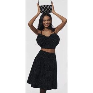 Anthropologie Maeve Taffeta Dot Midi Skirt Black Sz 10 NWT