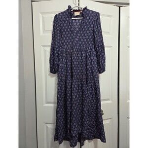 Anthropologie Maeve Tamarind Tiered Maxi Boho Prairie Dress, Pockets, Blue, XXSP