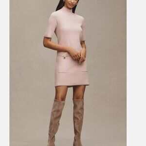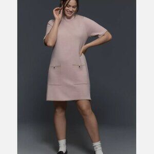 Anthropologie Maeve The Annalise Mock-Neck Mini Sweater Dress Knit 1X NWT Taupe