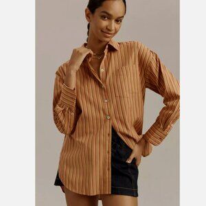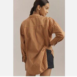 Anthropologie Maeve The Bennet Buttondown Shirt Brown Stripe MP NWT Oversize M P
