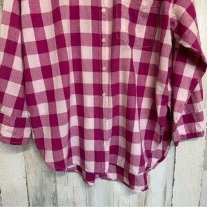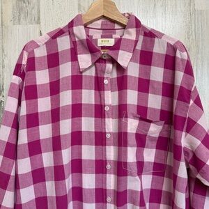 Anthropologie Maeve The Bennet Buttondown Shirt Pink White Buffalo Check, Button Front, Oversized Fit!