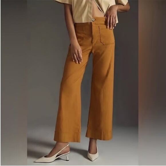 Anthropologie Maeve The Colette Crop Wide-Leg Pants Size 26 Ochre Mustard