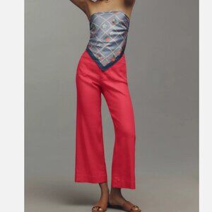Anthropologie Maeve The Colette Linen Blend Crop Wide-Leg Pants 18W NWT Pink 18