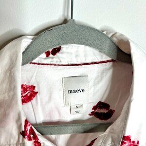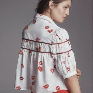 Anthropologie Maeve The Leandra Shirred Yoke Blouse Striped Hearts Edition Sz S