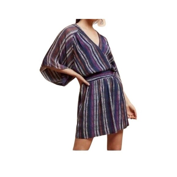 Anthropologie Maeve The Somerset purple women Blue mini 3/4 Dress size 6