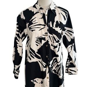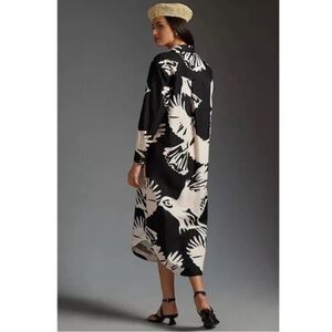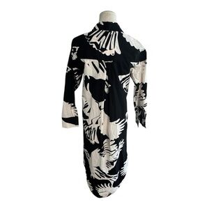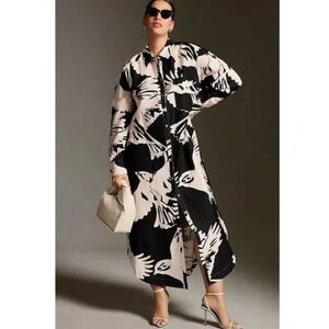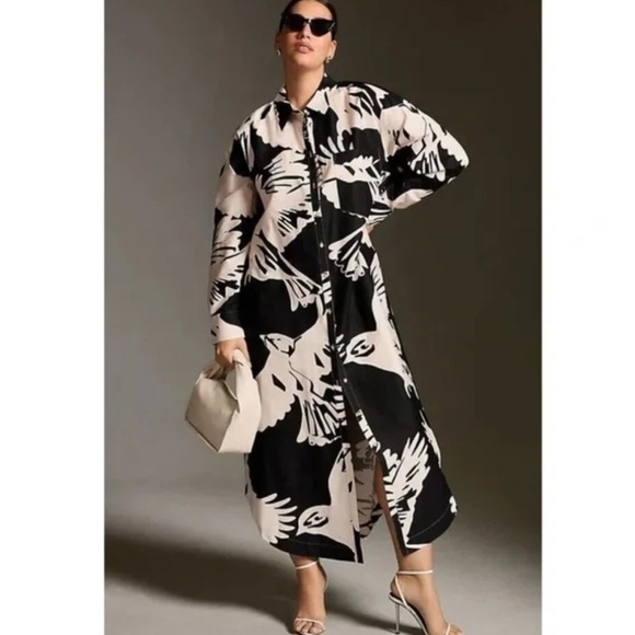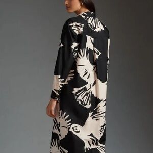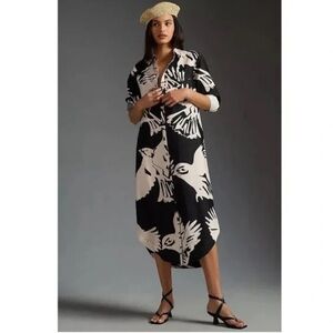 Anthropologie Maeve The Soren Black White Bird Print Midi Shirt Dress XXS XS S