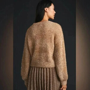 Anthropologie Maeve Tinsel Eyelash Soft Sparkle Sweater in Sand Tan Size 2X