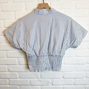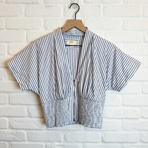 Anthropologie Maeve Tommie short sleeve zip front blouse smocked Striped Small