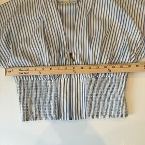 Anthropologie Maeve Tommie short sleeve zip front blouse smocked Striped Small