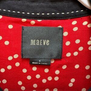 Anthropologie Maeve Top Red & White Polka Dot Button Down Career Work Size 4