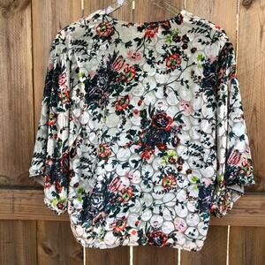 Anthropologie Maeve Top Umi Wrap Blouse Floral Small Velvet Burnout Embossed