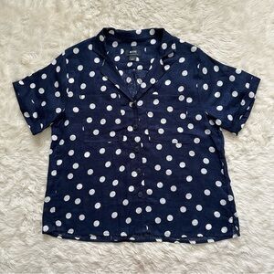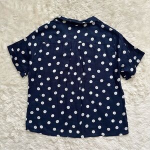Anthropologie Maeve Top Women’s Buttondown Surf 100% Linen Navy Dot Shirt Sz XS