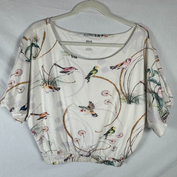 Anthropologie Maeve Top Womens XXS Birds Cropped Bubble Hem Dolman Sleeves Lined