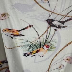 The Anthropologie Maeve Top in women’s XXS is a stylish pullover blouse featuring a vibrant floral and bird print on a white base. Designed with a cropped bubble hem, dolman sleeves, and a relaxed fit, this 100% cotton top is both comfortable and chic.