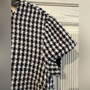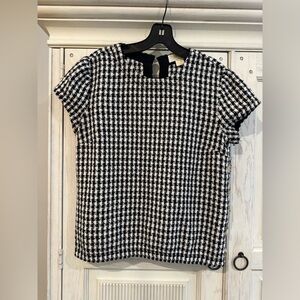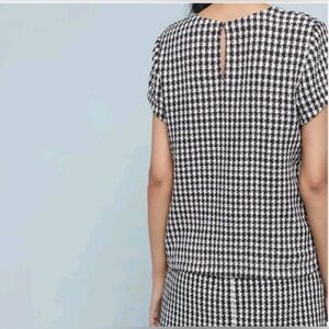 Anthropologie Maeve Townsend Black White Houndstooth Short Sleeve Top Boxy Sz 2