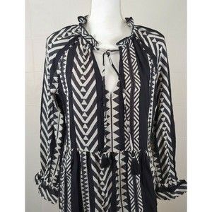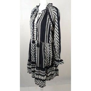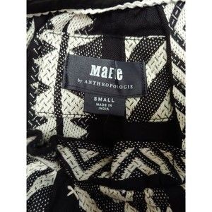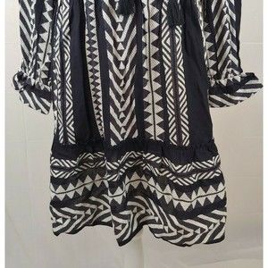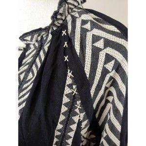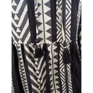 Anthropologie Maeve Tunic Dress Small Black White Tassels Boho Dominique Cotton