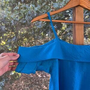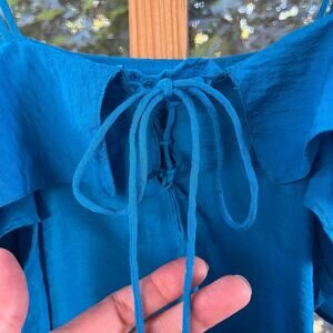 Anthropologie Maeve Turquoise Ruffled Lace Up Blouse Size M