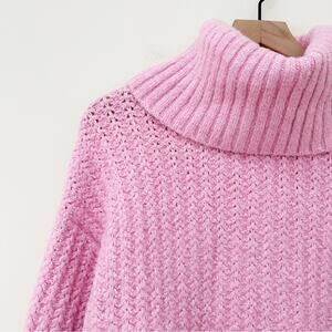 Anthropologie Maeve Turtleneck Pullover Chunky Knit Sweater Bubblegum Pink sz M