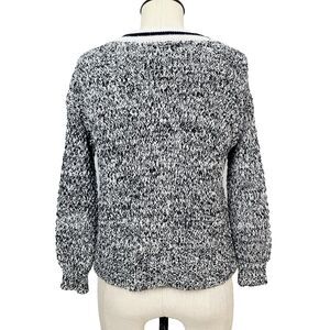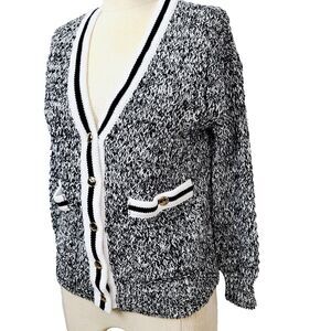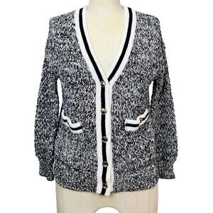 Anthropologie Maeve Tweed Boyfriend Cardigan Sweater XS Black White Marled Knit
