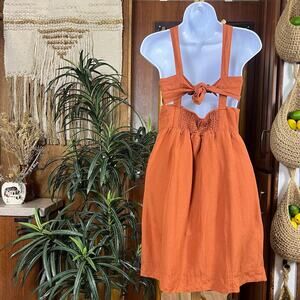 Anthropologie Maeve Twist Front Linen Mini Dress L | Terracotta Button Sundress