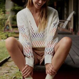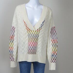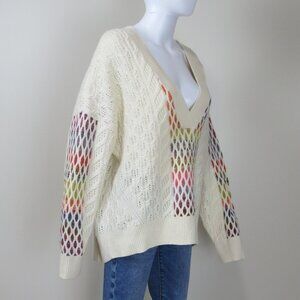Anthropologie Maeve V-Neck Cable Knit Lamb's Wool Sweater SIZE Large