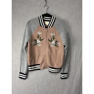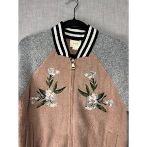 Anthropologie Maeve Varsity Embroidered Bomber Jacket Soft XS