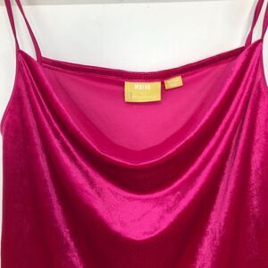 Anthropologie Maeve Vibrant Pink Velvet Tank Top with Semi Sheer Hemline