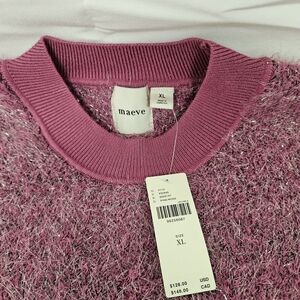 Anthropologie Maeve Violetta Short Sleeve Tinsel Sweater In Pink SZ XL NWT