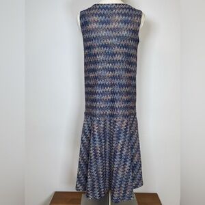 Maeve Westwater Chevron Knit Dress Size Small. Drop waist, hi-Lo style, A-Line, pullover, full, detachable, adjustable slip liner. Approximate measurements 40” top of shoulder to longest hemline, 18” across chest.