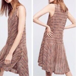 Anthropologie Maeve Westwater Knit Flounce Hem Dress Brown Motif A-Line