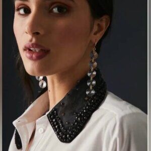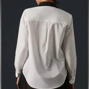 Anthropologie Maeve White Embellished Collar Button Down Size Small Peti…