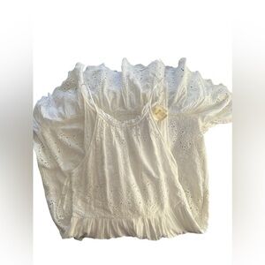Anthropologie Maeve White Eyelet Sundress Sz 2 High Neck Full Skirt Cruise Vacay
