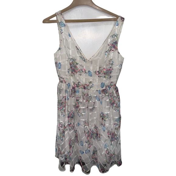 Anthropologie Maeve White Floral Party Peony Dress Wedding Aline Barbie 8 202