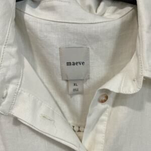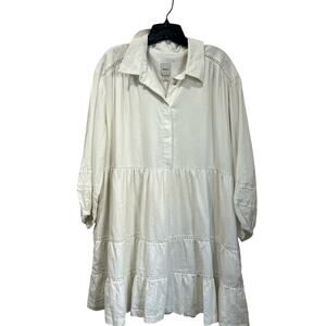 Anthropologie Maeve dress, linen blend, tiered mini dress, white shirt dress, resort style, casual chic, summer linen, size XL