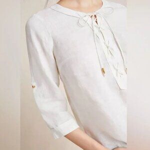 Anthropologie Maeve Ivory White Linen Blouse Lace up Tunic top
