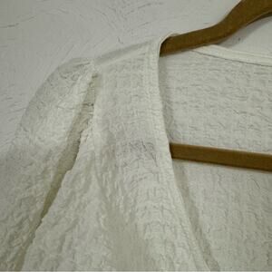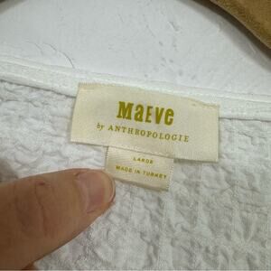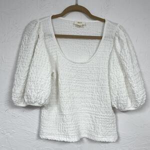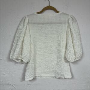 Anthropologie Maeve White Puff Sleeve Boho Blouse Womens L Peasant Crepe Shirt
