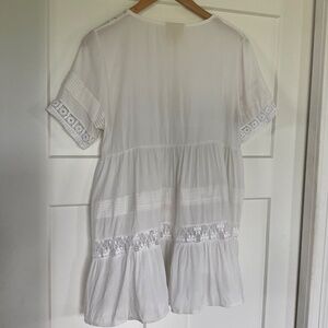 Anthropologie Maeve White Sheer Tiered Lace Crochet Boho Babydoll Tunic Medium