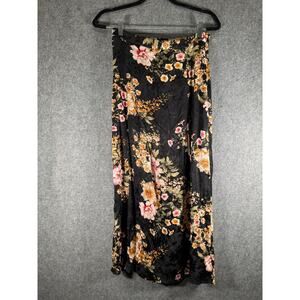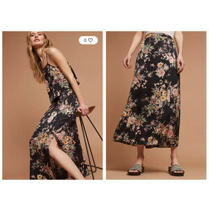 Anthropologie Maeve Women 4 Black Blooming Flora Midi Satin Boho Hippie