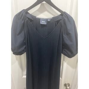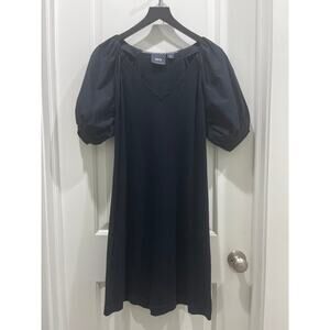 Anthropologie Maeve Women’s Annika Knit Dress Puff Sleeve V-Neck Black Sz S