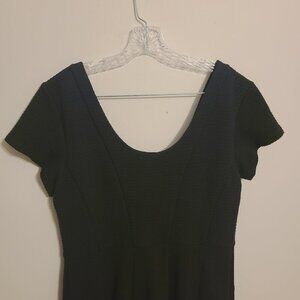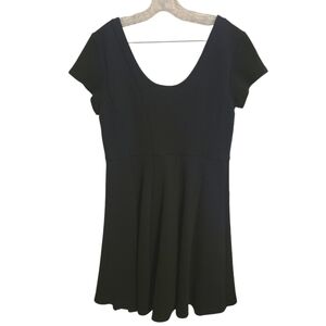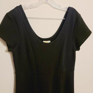 Perfect little black dress. Women's classic black Nova knit fit and flare short sleeve dress by Maeve for Anthropologie, size large. Flattering scoopneck collar and cap sleeves; no additional lining under skirt.