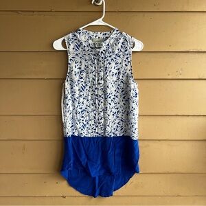 Anthropologie Maeve Womens Blue Silk Sleeveless High-Low 100% Silk Top Size 6