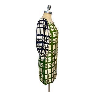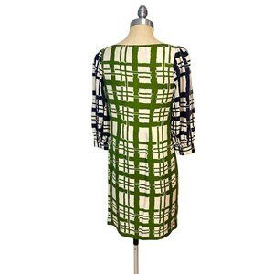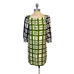 Anthropologie Maeve Women's Dress Green & Navy Geometric Print 3/4 Sleeve Size 2