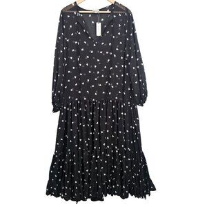 Anthropologie Maeve Womens OS Sheer Ditsy Heart Kaftan Cover Up Dress NWT