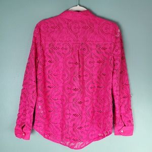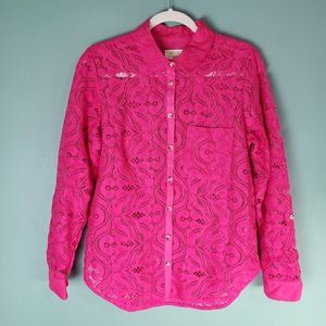 Anthropologie by Maeve Women's Pink Floral Lace Button Down Shirt Top Size 10